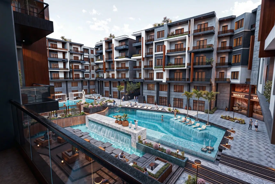 Moderno complesso residenziale di lusso che coniuga design elegante, comfort e praticità, ideale per residenza permanente, vacanze o investimento.